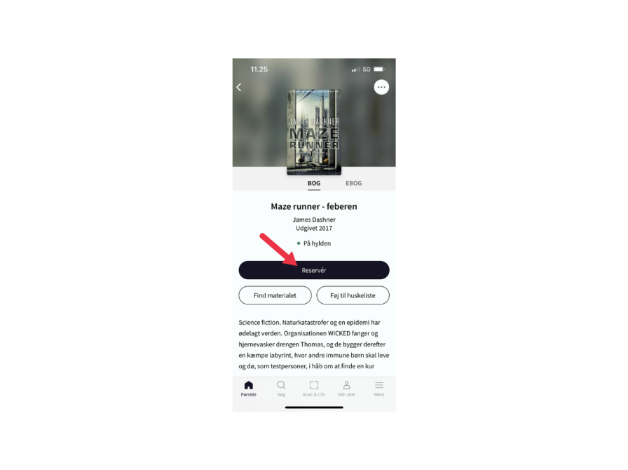 Du kan også reservere materialer direkte i appen ved at trykke på knappen 'Reservér':