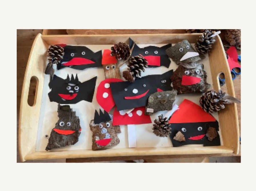 Når I har lavet naturvæsner, paddehatte og spøgefuglens hat, kan I digte eventyrlige historier om dem.