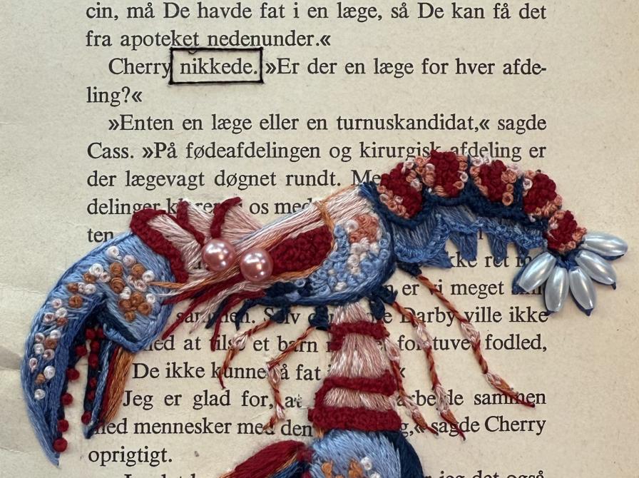 Køge BibliotekMarianne Nysted kreerer charmerende og kunstfærdige broderibilleder. Gør hende kunsten efter, når hun viser, hvordan du selv kan nyfortolke kasserede bogsider med nål og tråd.